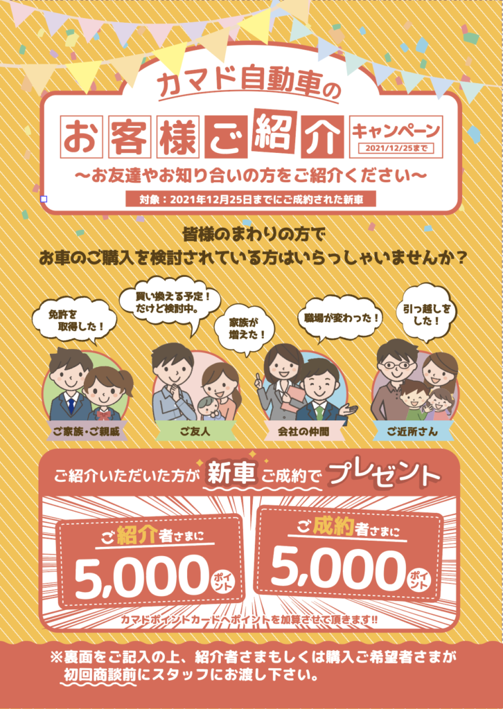 皆さまのまわりの方でお車のご購入を検討されている方はいらっしゃいませんか?