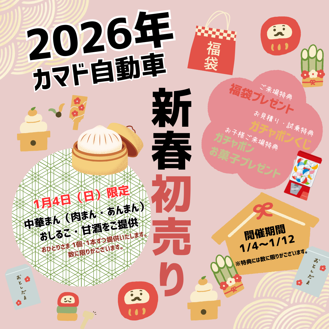 カマド自動車の初売りは1月4日(日)から、サービス工場は5日(月)からの営業となります!(^^)!